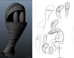 How should I rig his face so that he can do expressions like on the right? (with the top bandage acting like a unibrow for him to emote but so that it follows the curve of the black "marvin the martian" black void thing he has going on)