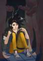 Never played it either, but from what I've read of the plot synopsis, she's one of a numberof kidnapped children (she's 14) who were abducted and turned into experimental psychic pilots. She escaped the torturous facility in that pod thingy and tries to get someone to help her stop the evil organization trying to take over the world.