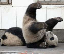 Intergeneric offspring in tetrapods are on the rare side, though they do happen. But panda hybrids with any other ursid would be extremely rare even in captivity, if at all possible. Species in Ursus are fair game though. Might be possible, but it's very unlikely.