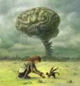 I love this picture a lot too- nonchalant feeding of a cat while eye-brain just chills majestically in the background.