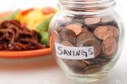 120KiB, 1300x863, 13799362-Saving-money-with-a-jar-of-pennies-from-the-savings-on-the-food-budget-Stock-Photo.jpg