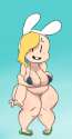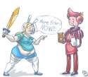 Another possibility is because some people in discussions felt that Finn's alternate sex design ends up with Fionna having a body that pisses of feminist. Point: Finn's body is nothing special, flat front and back, and he is 16, athletic and only his voice has gone through puberty. Fionnas is above average development of breast and tights, idk seems like a touchy subject is she was thin like Finn feminist would still bitch. Solution: Make her a plus size.
