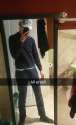 he has no dickbib, untucked collar and a blue dress shirt.