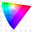 basically every display uses a set of red, green, and blue primary colors, so you see triangles of displayable colors like in: