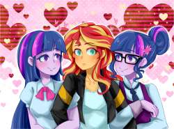 1MiB, 1280x948, 1000473__safe_twilight+sparkle_shipping_blushing_equestria+girls_cute_lesbian_looking+at+you_bedroom+eyes_sunset+shimmer.png