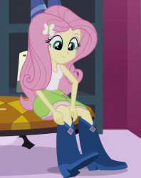 1MiB, 2311x1500, 988341__fluttershy_humanized_breasts_clothes_suggestive_upvotes+galore_looking+at+you_belly+button_socks_sunset+shimmer.png