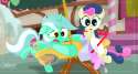 (Rarity version of the scene from Spaceballs where Vespa gets her hair shot)