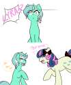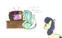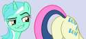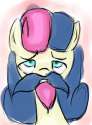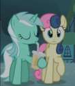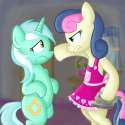 bonbon's look of disgust quickly fades, and she instinctively takes you inside her soft, warm mouth.