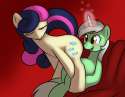 by the way bonbon's arched her back, and by the small, random bucking motions she's making, you can tell she's enjoying this too.