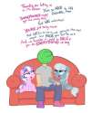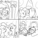 So it seems that Limestone is the eldest of Pinkie's siblings, and Marble is Pinkie's (slightly younger) twin. Maud's still rocking her schoolwork, and Pinkie's living with the Cakes in Ponyville, so that doesn't leave the most free hooves around the rock farm. Perhaps that's a source of tension for Limestone? Or maybe she's always been a bit tightly wound. She did love Pinkie's first party, so clearly she's willing to loosen up a little. And for all her shyness, Marble must be a strong and diligent worker.