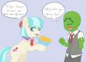 >"Your peas are haunted?! I told you gardening was a mare's job!">You pinch the bridge of your nose and sigh."No. It- okay, you know how to pee right?"