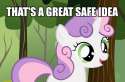 >Sweetie looks to the blanket with concern.>"What? No. Just.. Just reach down and pick me up! I can't sleep. Please pick me up!>You let out a big yawn, rolling your head around the pillow absent mindly...I'm sleepin' dude....Jus' come on....