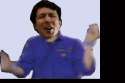 The exhibitionist takes out his coat and jumps into it with tears on his face