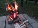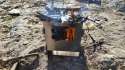 I tried using scavenged wood and chopped wood chips to cook with it, but with the limited space I couldn't get enough heat out of it to bring water to boil. Maybe it didn't help that it was around -15C every time I tried, but regardless it didn't work. I tried making top-down and bottom-up fires in it with the same results.