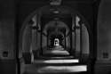 If this is the sort of thing you're interested in, find patterns or repeating shapes, leading lines, or create a vanishing point.