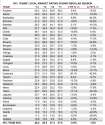 NFC East Eli Manning 64% 4,200 yards 31 TDs 10 INTs Sam Bradford 62% 3,900 yards 20TDs 20 INTs Kirk Cousins 63% 4,000 yards 24 TDs 19 INTs NFC North Aaron Rodgers 68% 4610 yards 42 TDs 8 INTs Jay Cutler 59% 3,600 yards 20 TDs 15 INTs Teddy Bridgewater 66% 3,134 yards 18 TDs 14 INTs Matthew Stafford 63% 4,110 yards 23 TDs 19 INTs NFC South Cam Newton 57% 3,700 yards 26 TDs 15 INTs Drew Brees 66% 4,600 yards 27 TDs 16 INTs Matt Ryan 63% 4,300 yards 27 TDs 15 INTs Jamies Winston 58% 3,600 yards 20 TDs 17 INTs NFC West Carson Palmer 63% 4,810 yards 38 TDs 11 INTs Russel Wilson 66% 3,301 yards 25 TDs 13 INTs Colin Kaepernick 59% 3,401 yards 18 TDs 14 INTs Nick Foles 58% 3,169 yards 17 TDs 14 INTs AFC East Tom Brady 80% 5,629 yards 48 TDs 4 INTs Ryan Tannhill 61% 3,913 yards 26 TDs 14 INTs Tyrod Taylor 66% 3,113 yards 23 TDs 9 INTs Ryan Fizpatrick 60% 3701 yards 25 TDs 17 INTs AFC North Andy Dalton 65% 4,610 yards 36 TDs 10 INTS Joe Flacco 60% 4010 yards 23 TDs 19 INTs Josh McCown 60% 3,710 yards 26 TDs 13 INTs AFC West Peyton Manning 62% 4112 yards 24 TDs 25 INTs Phillip Rivers 67% 5010 yards 37 TDs 20 INTs Alex Smith 61% 3,900 yards 23 TDs 13 INTs Derek Carr 70% TDs 4,450 yards 35 TDs 8 INTs AFC South Andrew Luck 57% 4377 yards 30 TDs 25 INTs Blake Bortles 57% 4101 yards 30 TDs 18 INTs Marcus Mariota 64% 2,910 yards 17 TDs 9 INTs Texans QB- shit
