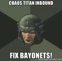 An ork, an eldar and a space marine stumble upon a chaos portal, while being stranded in the warp.