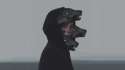 Could someone make this background black and reduce the size of the subjects (both wolves) by about 75% in size, keeping them centered. Overall image size should be 1920x1080. If you could add a feint smokey effect to the black background as well that would be incredible.